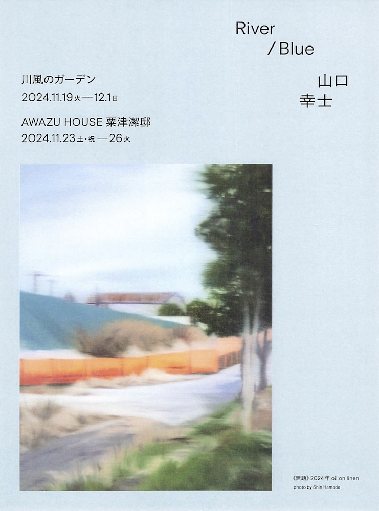 山口幸士は、2018年にNYから帰国後、自身のホームタウンである川崎に拠点を移し、心身ともに川崎そのものを見つめ直すことでローカルを題材にした作品を多く発表。2022年には自主企画「小さな光」を川崎の工場地帯で開催。 2024年には川崎市市⺠ミュージアムとの共同企画展「River / Blue」を川風のガーデンと粟津潔邸の二ヶ所で開催し、川崎という街とさらに関わりを深めてきました。